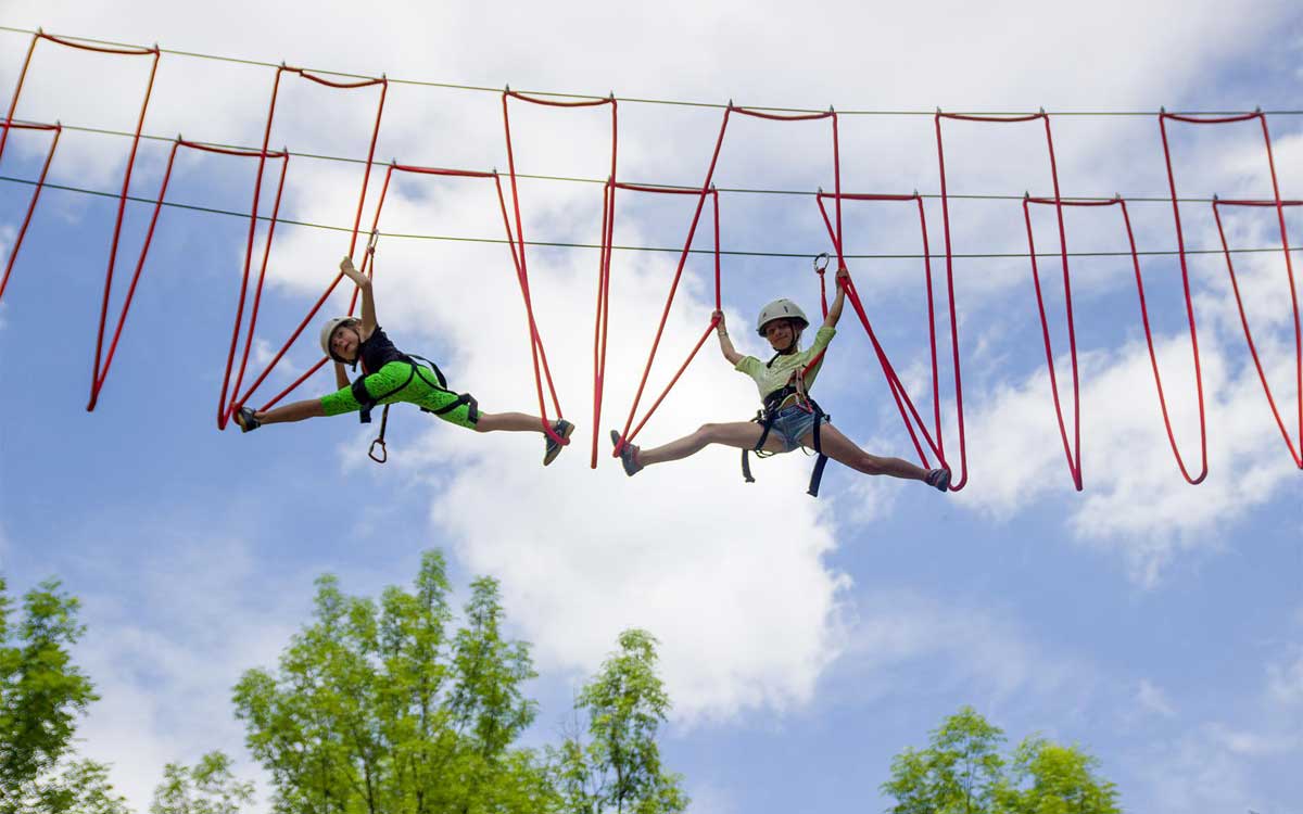 - dla dorosłych oraz dzieci od około 10 roku życia – na trasie jest wiele mostów wiszących i tyrolek. Wysokość przeszkód od 6 do 12 m. Trasa wyposażona jest w unikatowy system ciągłej asekuracji – całkowicie chroniącym przed upadkiem (pokonujący trasę nie musi przepinać żadnych karabinków i jak również nie jest w stanie sam wypiąć się z liny asekuracyjnej).